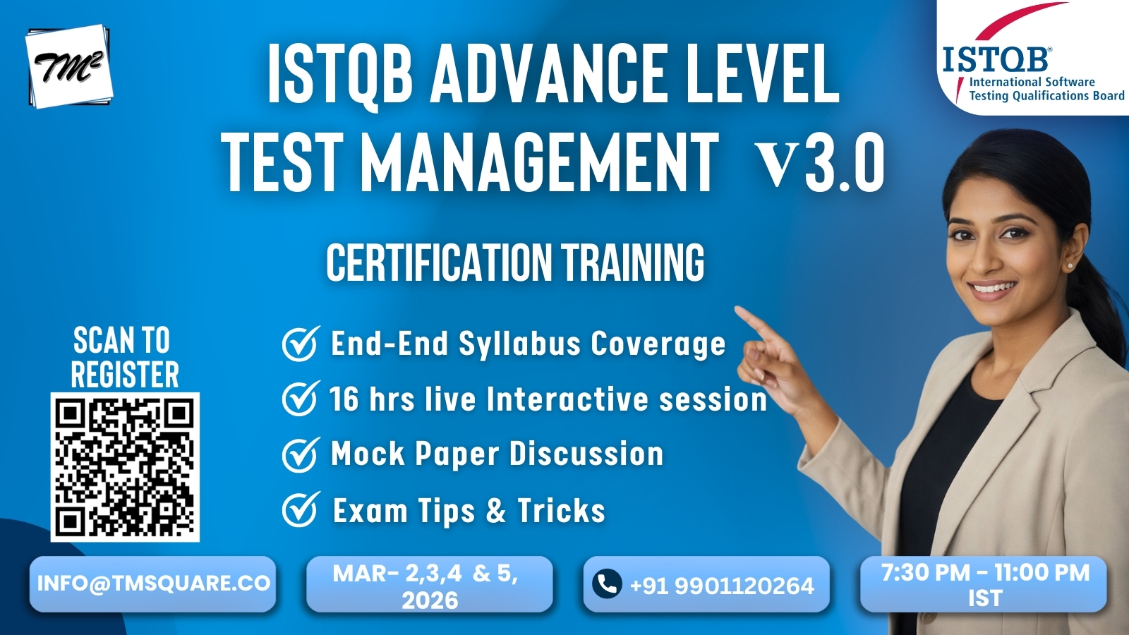 TM SQUARE TECHNOLOGY SOLUTIONS offers training programs to professionals in technical and managerial domains. Course content, delivery mode, and certification details will be as per the information provided on our website or brochures.